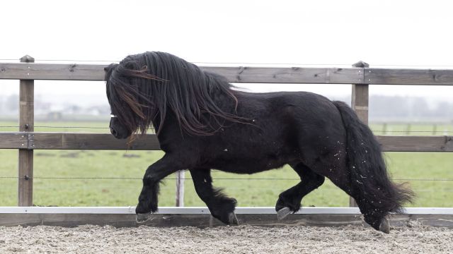 Never Ending is een nieuwe aanwinst voor de “zwart” fokkerij op ons station. Met zijn fraaie pedigree is hij een welkome aanvulling voor ons hengstenbestand. Zijn vader is de 1ste premie hengst Duncan van de Garderenshof, zoon van de Preferente Oud Nationaal Kampioen Up To Date of Shetlane. De moeder van Never Ending is de Kroon-Preferente merrie Zafanja van de Bloemhof. Zafanja is zowel in Bergharen als in Noord-Holland Dag- en Erekampioen geweest. Dat Never Ending super fokt blijkt wel uit de keuringsresultaten van zijn kinderen. Er zijn al diverse kampioenen gekomen uit zijn eerste twee jaargangen. Nationaal Veulenkampioen 2024 in Lunteren: Tabira van de Vijfmorgen is een dochter van Never Ending. Never Ending is een hengst die best is van type met veel houding en rasuitstraling. Hij heeft een fraai sprekend hoofdje met een mooi front en zit royaal in staart en manen. Daarbij heeft hij best ontwikkeld beenwerk met een sterke stap en een sublieme draf!