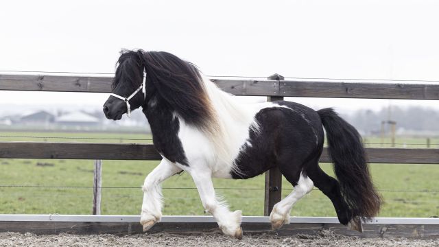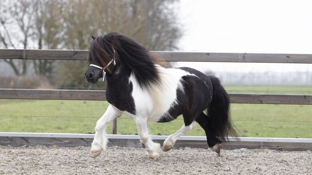 Midas het drafwonder van de hengstenkeuring 2024 en 2025! 2 jaar achter één verkozen tot “hengst met de beste draf” zowel door het publiek als door de vakjury. Deze zeer fraaie zwartbonte hengst is nieuw op ons station. Ook dit jaar is hij wederom bekroond met een 1ste premie op de hengstenkeuring en 2de geplaatst in zijn rubriek. Midas heeft als vader de zeer goed fokkende 1ste premie hengst Eltjo van Veldhuizen. De moeder van Midas is de Kroon-Preferente zwartbonte merrie Zamira van de Vijfmorgen. Zamira fokt super, ze heeft al meerdere goedgekeurde zonen. Zamira is een dochter van de zwartbonte hengst Pinto van de Olde Maten x de Kroon-Preferente 1ste premie merrie Trijnie van de Vijfmorgen. Trijnie heeft als vader de Preferente zwartbonte top hengst Carlos van Heesselt. Midas fokt zelf ook super best want in 2024 had hij de veulenkampioen in Wenum-Wiessel en reserve veulenkampioen in Mariënheem, en dit jaar is er een zoon van hem goedgekeurd nml. de vosbonte Ralph ut de Weeren. Midas is een sterk ontwikkelde complete hengst met een schitterend hoofd en een fraaie bovenlijn. Hij beweegt lichtvoetig met veel souplesse, zelfhouding en kracht.