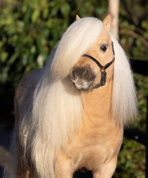 Deze fraaie palomino hengst is een plaatje om te zien met zijn sneeuwwitte manen en staart. Hij heeft een geweldige staat van dienst opgebouwd in de fokkerij. Shakira is definitief goedgekeurd en bekroond met een 1ste premie. Zijn pedigree is een combinatie van de allerbeste bloedlijnen uit de minifokkerij. De vader van Shakira is de Preferente 1ste premie hengst Killiam van Dennehove (v. Florio v.d. Beatrixlaan x Romany Victory). De moeder van Shakira is de Kroon-Preferente Gracia van de Buske. Zij is een dochter van de Keur-Preferente Oud Nationaal Kampioen Adam van Spuitjesdom. In de fokkerij heeft Shakira een zeer goede naam opgebouwd. Hij heeft meerdere goedgekeurde 1ste premie zonen en ook zijn dochters doen goed van zich spreken zowel in de keuringsbaan als in de fokkerij. Shakira is best van type, met veel houding en front en een mooi hoofdje. Hij heeft best ontwikkeld beenwerk en een ruime stap en excellente draf.