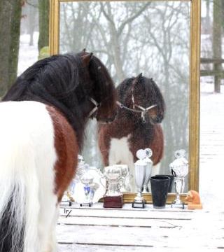 Vanity, de UITBLINKER van de hengstenkeuring 2013. Hij behaalde zowel het mini kampioenschap als ook het Algemeen kampioenschap en de titel Erekampioen in 2013. Vanity is 10x bekroond met een 1ste premie op de hengstenkeuring. Vanity is interessant qua kleur en afstamming voor de minifokkerij. Zijn vader is de Preferente Brevet van Spuitjesdom een hengst die zijn sporen verdiend heeft zowel in de baan als in de fokkerij. De moeder van Vanity is de apart gekleurde 1ste premie Kroon-Preferente merrie Ourisia van de Buxushof en haar moeder is eveneens Kroon-Preferent. Dat Vanity best fokt blijkt wel uit de zeer goede keuringsresultaten van zijn kinderen hij is dan ook definitief goedgekeurd. Zijn kinderen hebben een hoog premiepercentage met veel kopnummers, verschillende 1ste premie dochters en een lange rij van kampioenen op de premiekeuringen. Ook heeft Vanity drie goedgekeurde bruinbonte zonen in Nederland en daarnaast veel goedgekeurde zonen in het buitenland. Zijn populaire bruinbonte kleur ook wel drie-kleur bont genoemd vererft Vanity zeer sterk. Vanity is fraai van type met veel ras een mooi front en een sprekend hoofdje, hij heeft een sterke royale stap en een excellente draf die hij keer op keer laat zien. Vanity is een topper zowel in de baan als in de fokkerij!